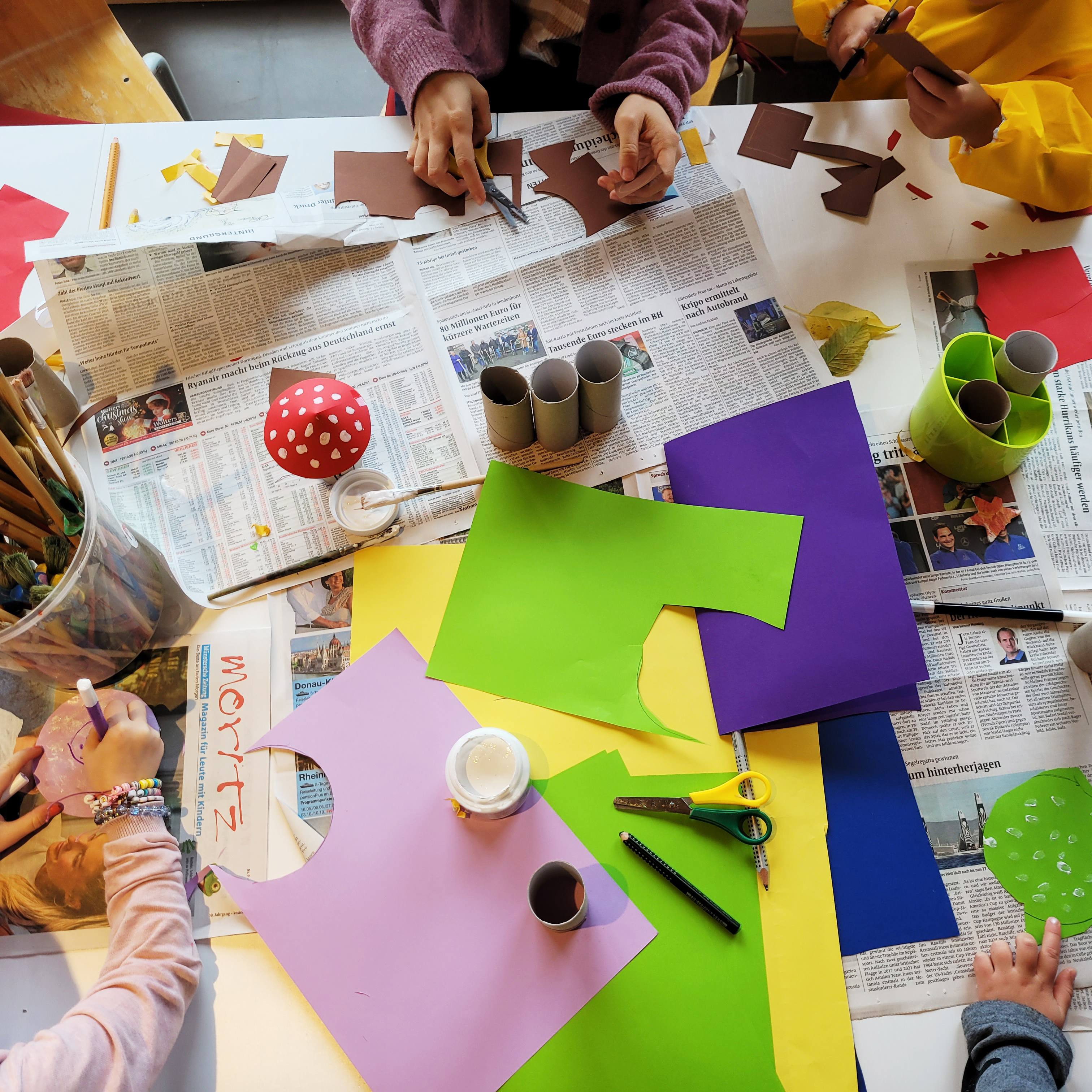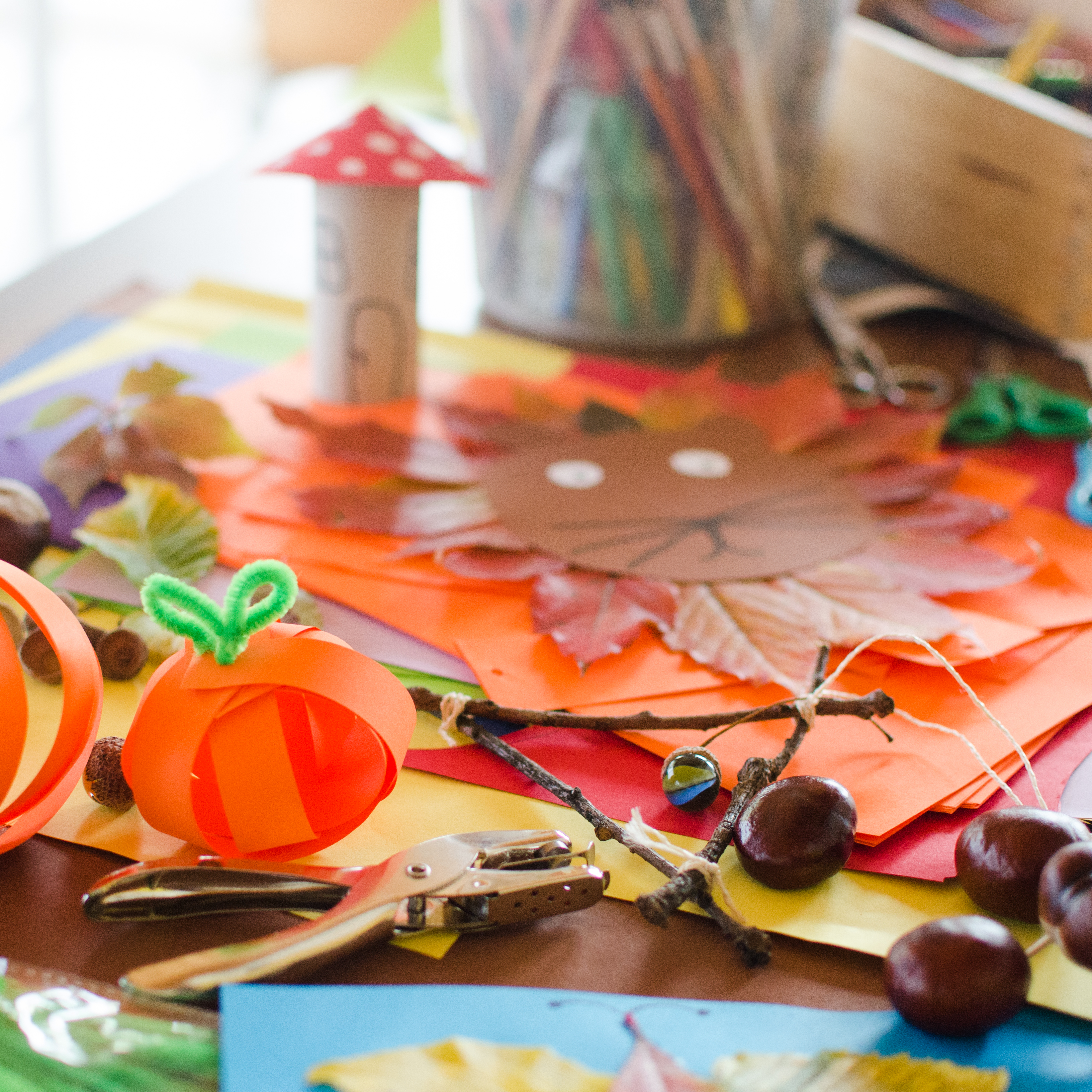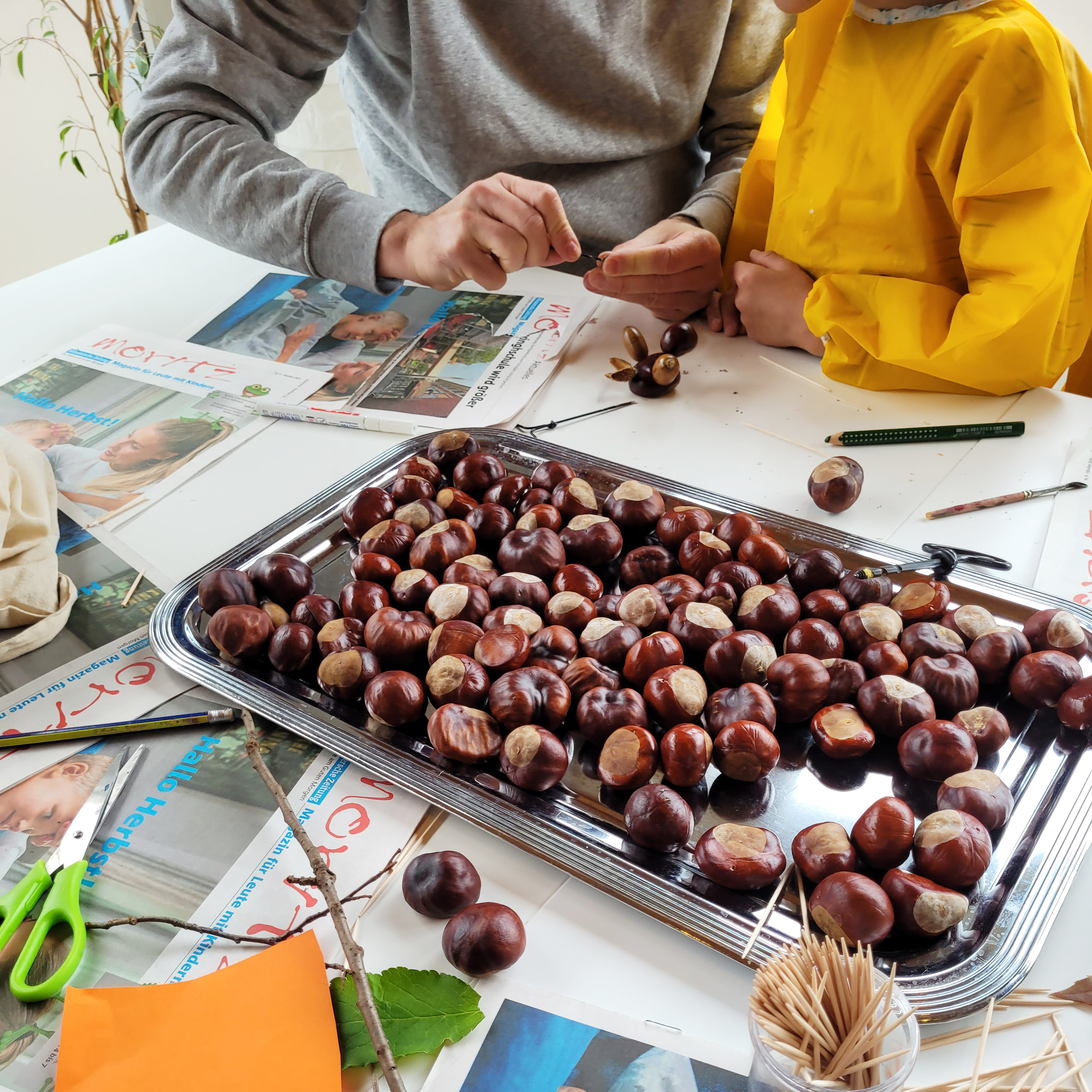 In unserer Kreativzeit für Familien sind heute viele kleine und große Kunstwerke aus herbstlichen Naturmaterialien entstanden.